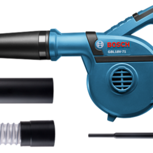 18 V BlowerThe Bosch GBL18 V-71N 18 V Blower is a powerful, convenient cordless blower that provides high air force at a compact size. It provides robust operation, with a 71 cubic-feet-per-minute (CFM) rating and air speed of 167 mph, to work quickly. It comes with a variety of nozzle choices. It has two speeds for enhanced control, and it has an outstanding power-to-weight ratio. This blower is built with an efficient motor that helps it to deliver ample runtime, delivering nine minutes per battery Amp hour (Ah) on low speed and five minutes per Ah on high speed.