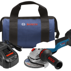 18V EC Brushless Connected 4-1/2 In. Angle Grinder Kit with No Lock-On Paddle SwitchThe Bosch GWS18V-45PSCB14 18V Connected 4-1/2 In. Angle Grinder with CORE18V Battery delivers the ultimate combination of performance, control and power in a cordless grinder kit. The GWS18V-45PSC’s efficient EC Brushless motor has the capacity to transfer up to 35% more power and up to 110% more runtime using the CORE18V battery. The grinder features an onboard user interface for tool feedback plus speed-setting control. It also includes Bluetooth® connectivity, using the Bosch GCY30-4 module to link to the free Bosch Toolbox app on a mobile phone, for more detailed feedback and enhanced tool control. It has advanced electronics for enhanced user protection, such as drop control to shut the tool off if it’s accidentally dropped, KickBack Control to reduce the hazard of sudden tool reactions to binding situations, restart protection and soft-start technology. It also features a burst-resistant wheel guard. This tool features a two-position Vibration Control side handle, slim soft-grip design and a large spindle lock.