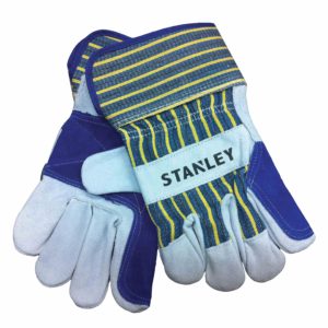 Select Cowhide Leather Double Palm GlovesThe STANLEY Select Cowhide Leather Double Palm Gloves feature a select shoulder cowhide material in the palm and knuckle band, blue shoulder leather palm and forefinger reinforcement, blue and yellow back material, and a rubberized cuff for comfortable wrist protection.