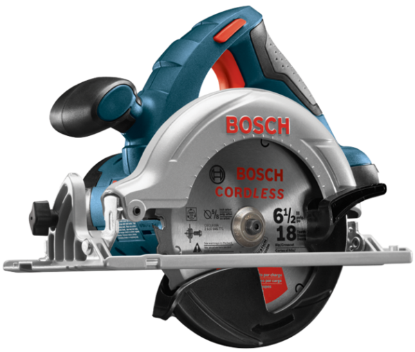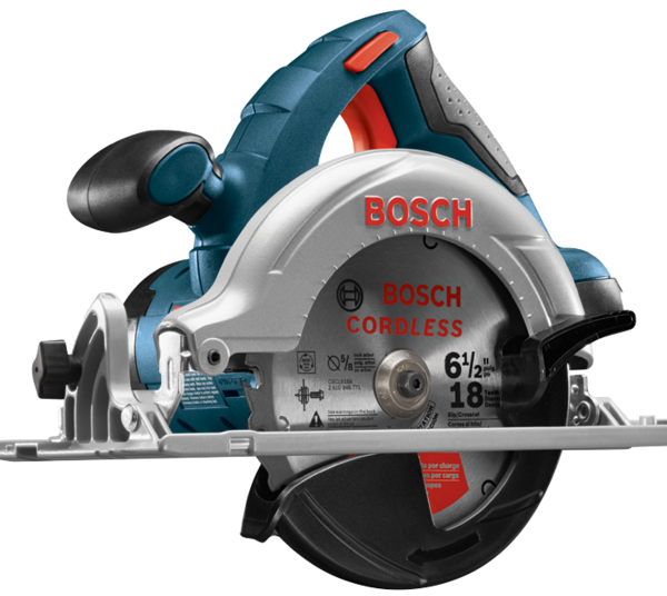 The Bosch CCS180 18 V 6-1/2 In. Circular Saw easily cuts through 2 In. material, including wood and decking, for professional cuts in difficult areas. The cordless saw includes a 50° bevel for added versatility, a simple straightforward depth gauge and bevel scale, and an anti-snag lower guard to ease into the cut. With a weight of only 6.6 Lbs., this power saw is an excellent choice pros such as roofers, framers, or deck-builders who often have tough cuts in close or difficult spaces. An electronic brake stops the blade quickly for reduced down time between repetitive cuts.
