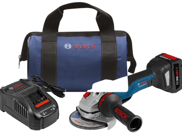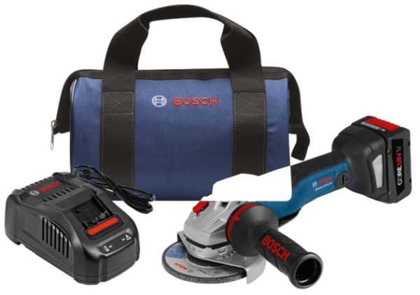 The Bosch GWS18V-45PSCB14 18V Connected 4-1/2 In. Angle Grinder with CORE18V Battery delivers the ultimate combination of performance, control and power in a cordless grinder kit. The GWS18V-45PSC’s efficient EC Brushless motor has the capacity to transfer up to 35% more power and up to 110% more runtime using the CORE18V battery. The grinder features an onboard user interface for tool feedback plus speed-setting control. It also includes Bluetooth® connectivity, using the Bosch GCY30-4 module to link to the free Bosch Toolbox app on a mobile phone, for more detailed feedback and enhanced tool control. It has advanced electronics for enhanced user protection, such as drop control to shut the tool off if it’s accidentally dropped, KickBack Control to reduce the hazard of sudden tool reactions to binding situations, restart protection and soft-start technology. It also features a burst-resistant wheel guard. This tool features a two-position Vibration Control side handle, slim soft-grip design and a large spindle lock.