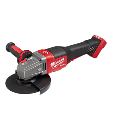 Our M18 FUEL™ 4-1/2” – 6” Braking Grinder, Paddle Switch, No-Lock is our highest performing small angle grinder. It generates the power of a 13A corded grinder, brakes all accessories under 3 seconds, and has 6” grinding capacity. The POWERSTATE™ Brushless Motor provides you with 9,000 RPM and the power equivalent of a 13A corded grinder, delivering industry-leading performance. REDLINK PLUS™ Intelligence ensures maximum performance and protects your angle grinder from overload, overheating and over discharge. The Rapid Stop Brake feature stops all accessories in under 3 seconds. Providing you with high performance, advanced ergonomics and legendary durability, the M18 FUEL™ 4-1/2” – 6” Braking Grinder is designed to complete the toughest grinding, surface preparation and cutting applications with all 4-1/2” – 6” accessories. The M18™ REDLITHIUM™ HIGH OUTPUT™ XC6.0 Battery provides you with more material removed per charge and unmatched run-time in all applications. Tool-free accessory changes using the FIXTEC nut and tool-free guard adjustments mean you will experience less downtime as you work. The cordless angle grinder’s grinding wheel is sold separately.