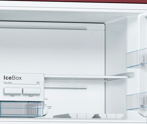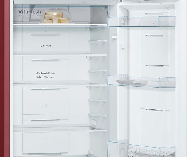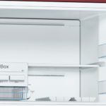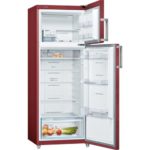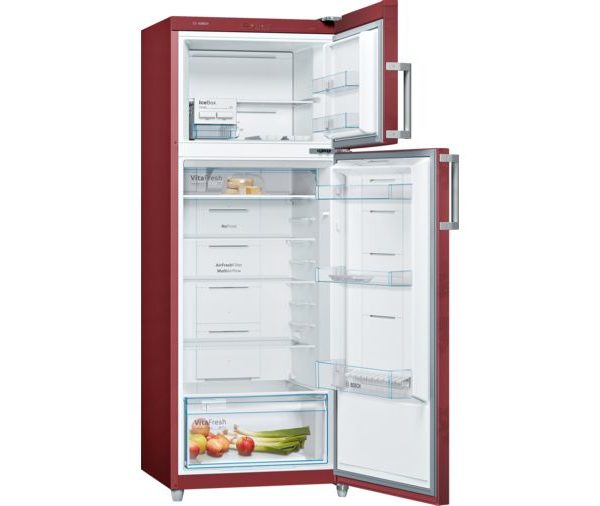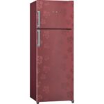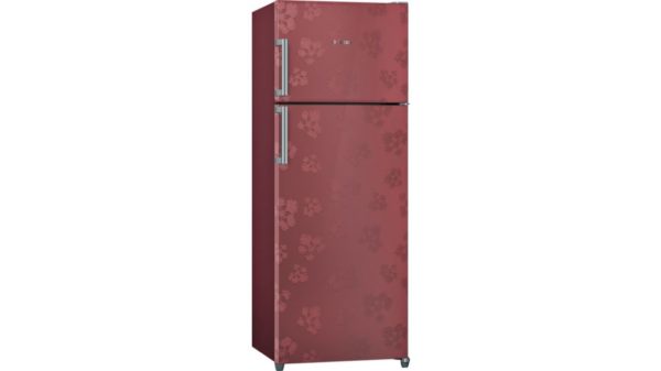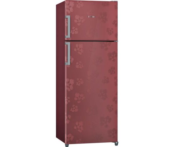A Wine red color with pattern door design Top Freezer with VitaFresh system .